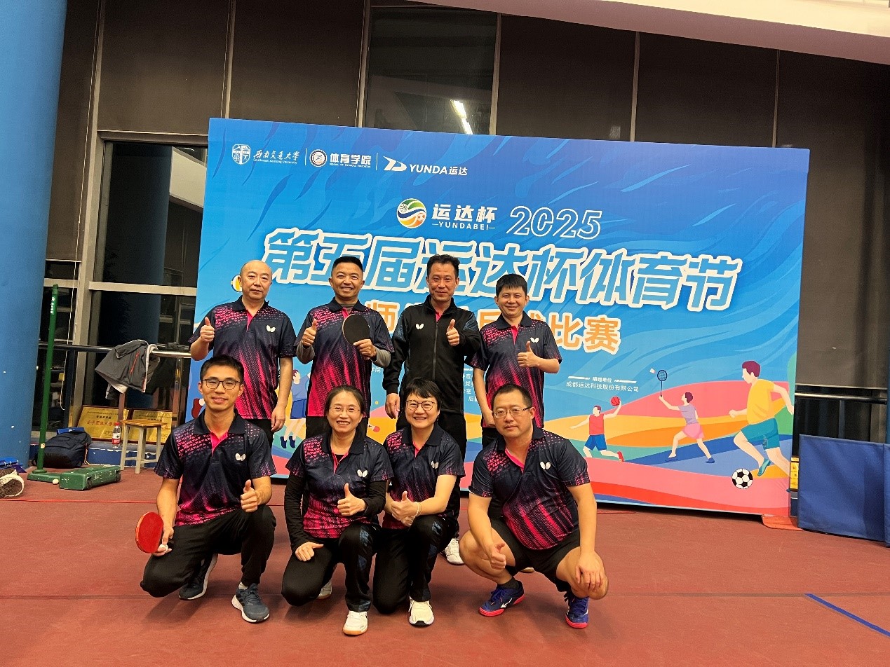 在2025年11月27日举行的西南交通大学第五届“运达杯”体育节师生乒乓球比赛(教工组)中,交通运输与物流学院教职工乒乓球队团结一心、敢打敢拼,以全胜战绩一路过关斩将,最终勇夺冠军,展现了学院教职工昂扬向上的精神风貌和出色的团队凝聚力。本届比赛竞争激烈,教工组共分为A、B两个小组进行循环赛。交通运输与物流学院代表队被分在A组,同组对手包括附属中学、地球科学与工程学院和电气工程学院。在小组赛阶段,队员们便展现出强大的实力,...