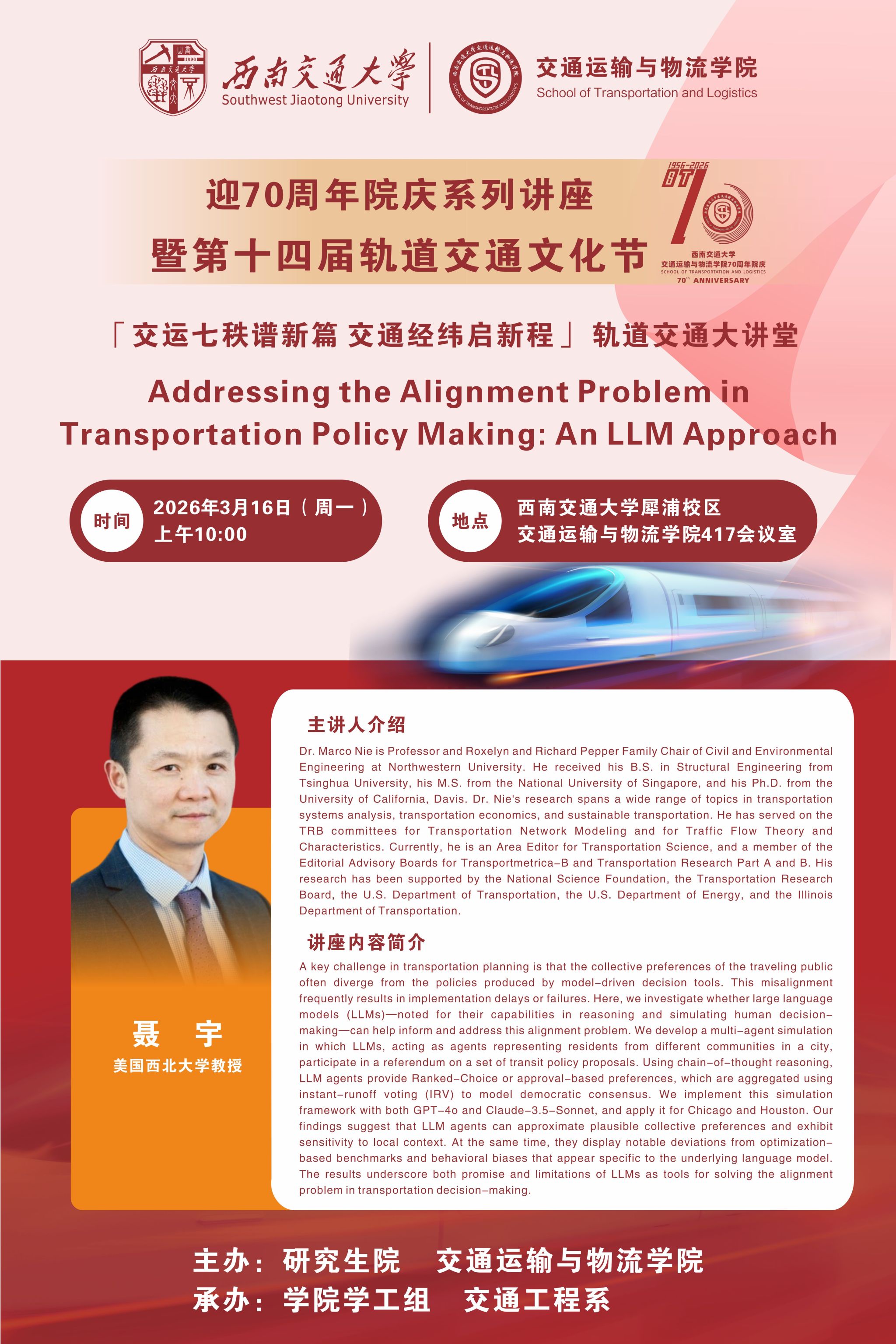 地点:西南交通大学犀浦校区交通运输与物流学院 417学术报告厅