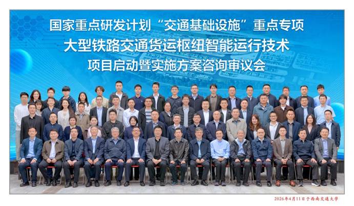 近日,国家重点研发计划“大型铁路交通货运枢纽智能运行技术”项目启动暨实施方案咨询审议会在蓉召开。西南交通大学校长闫学东,交通运输部科技司科技创新发展处四级调研员张鹏浩,国家铁路局科技与法制司科技管理处一级调研员刘晓冬出席会议,西南交通大学科学技术发展研究院院长陈民武主持会议。该项目由学校刘晓波教授牵头承担,近日获批立项,标志着学校在铁路货运枢纽智能化领域的科研实力与影响力迈上新台阶。