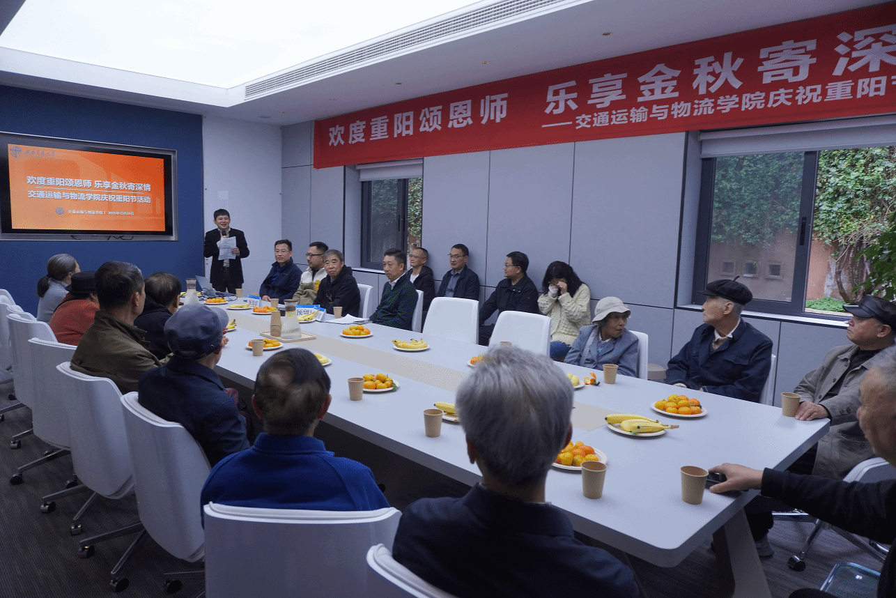 金秋送爽,丹桂飘香。在一年一度的重阳佳节来临之际,为弘扬中华民族尊老、敬老、爱老的传统美德,表达对离退休教师的崇高敬意与深切关怀,20251029日下午,西南交通大学交通运输与物流学院“欢度重阳颂恩师,乐享金秋寄深情”庆祝重阳节活动在九里校区校友之家会议室温情启幕。学院离退休教师、校友院友、学院领导、教师及学生代表欢聚一堂,共叙情谊,同庆佳节。本次活动由学院专项主管陶思宇主持。