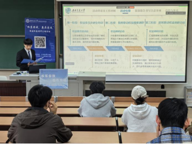 活动伊始,主持人首先指出权益大会不仅是学校精准了解学生在基础设施、生活服务等方面需求的关键渠道,更是推动问题解决、完善校园服务,有效搭建师生沟通桥梁。研究生会秉持全心全意服务同学的宗旨,通过提案收集、调研沟通广泛汇聚学生诉求,既能够优化校园治理体系、提升服务质量,又切实帮助学生解决实际问题,激发学生的主人翁意识与社会责任感。随后主持人详细介绍了本次权益活动的整体流程。活动首先通过专项培训增强权益委员对工作的理解,明确流程与规范,并以班级、研会及个人等多渠道广泛征集提案,进而组织对提案的分类调研与报告撰写,最终进行成果总结与反思,并以持续优化工作机制。
