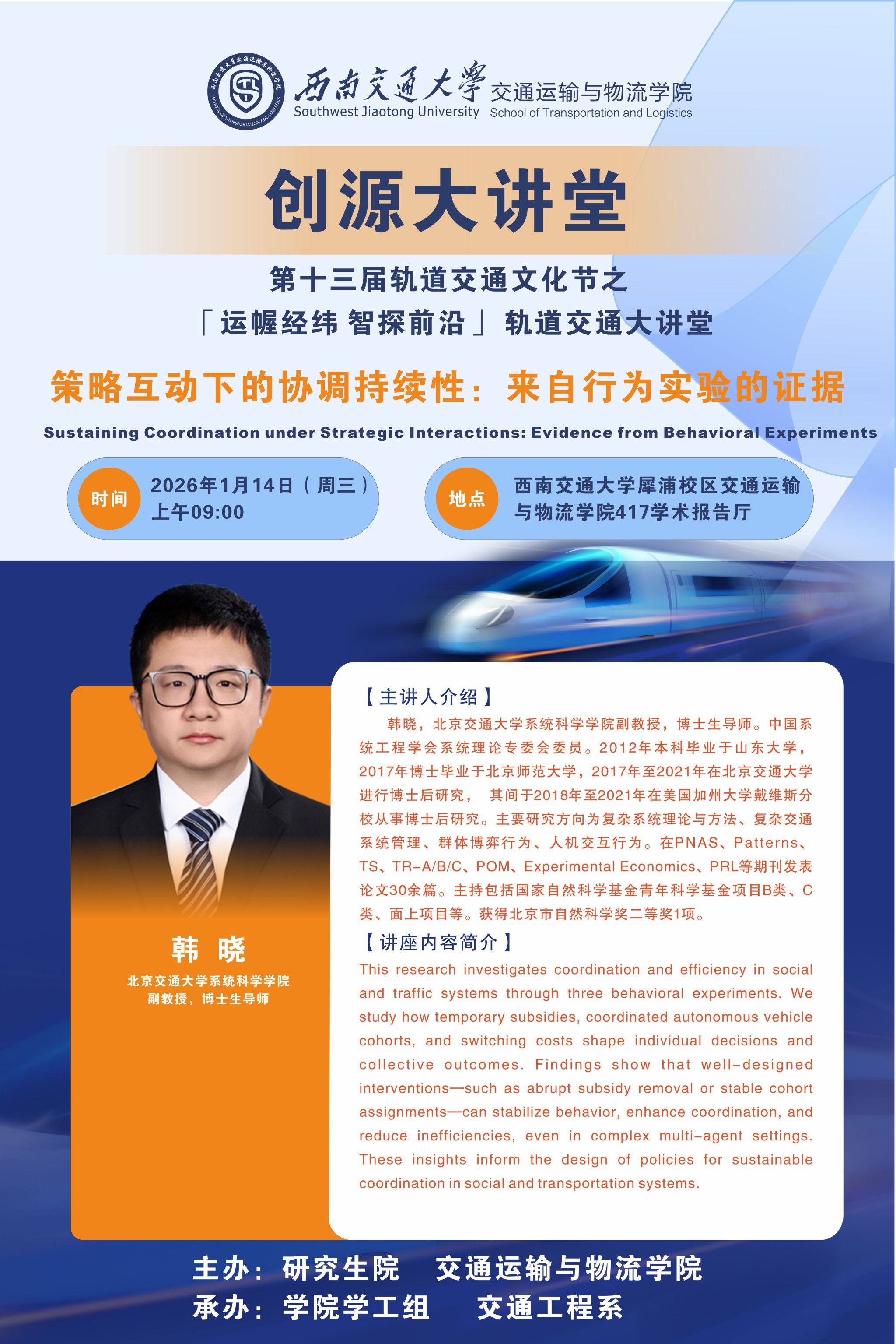 地点:西南交通大学犀浦校区交通运输与物流学院 417学术报告厅